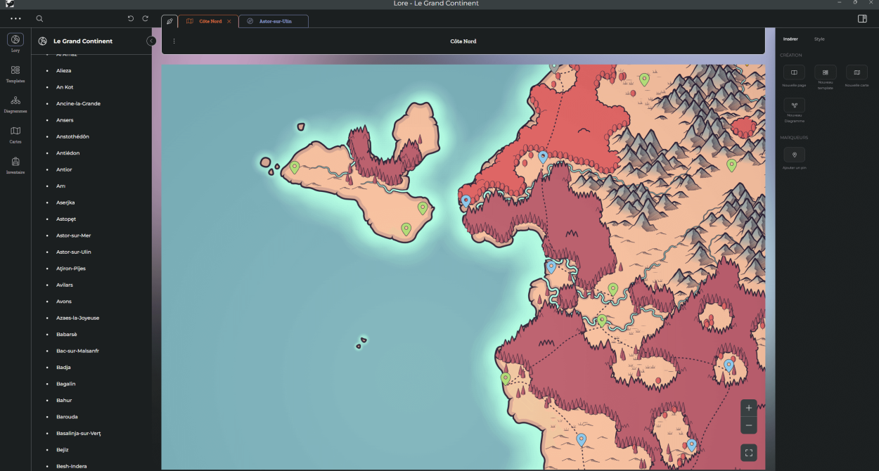 Organisez et naviguez facilement entre les pages de votre monde grâce à des tags visuels. Simplifiez la recherche et la gestion des informations.